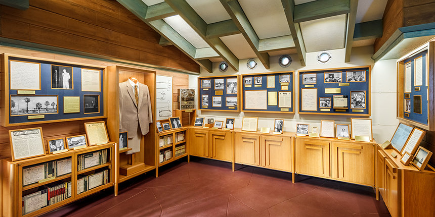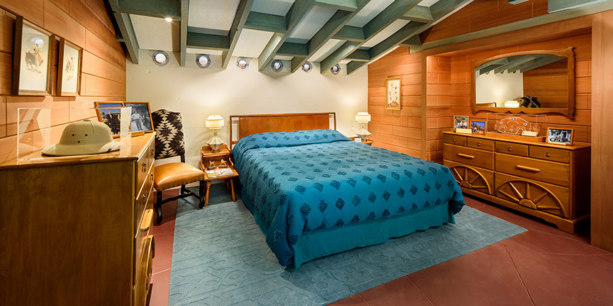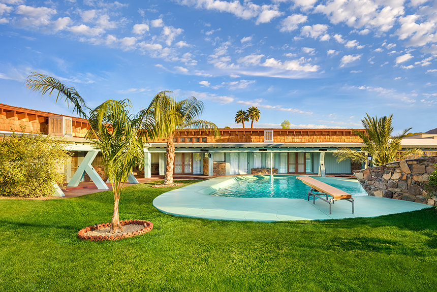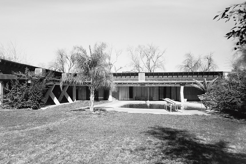 Sein Anwesen an der Osborn Road, ein eindrucksvolles Beispiel für die Architektur des Prairie-Stils, wurde 1948 erbaut und befand sich inmitten eines riesigen Zitrusgartens, der sich über ein Gebiet erstreckte, das sich seither zu einem Vorort von Phoenix entwickelt hat. Als Mr Hubbard 1954 ankam, gab es auf dem Gelände tatsächlich noch ordentliche Reihen von etwa vierzig Navelorangenbäumen aus dem ursprünglichen Obstgarten.